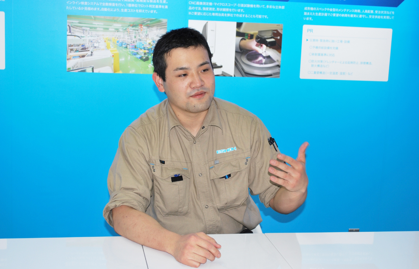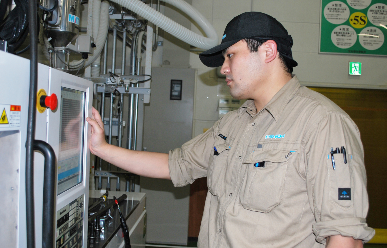 そして、就職支援の方の紹介でエストーを知り、会社見学に行き、成形という未体験の分野で働きたいと思い、入社を決めました。現場の雰囲気が良かったのもポイントですね。